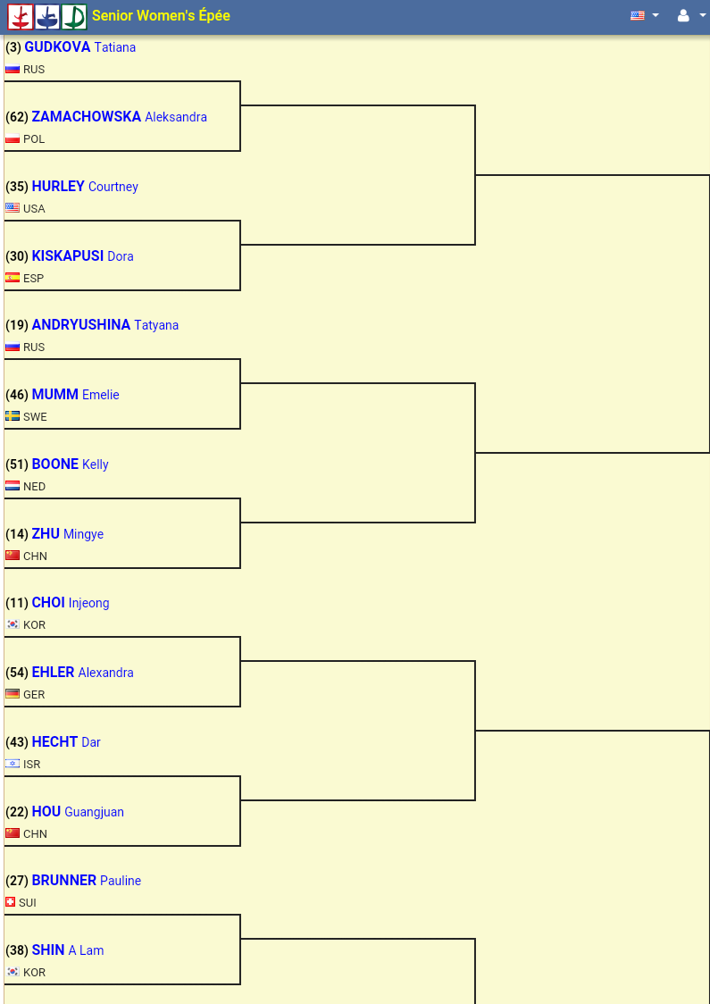 Tras la primera fase de grupo, consiguió 5 victorias con una sola derrota, consiguiendo una brillantísima 14 posición que la clasificó directamente para el cuadro final de 64 el domingo día 22. Con sus compañeras de selección española, las 4 pasaron la ronda de ‘poules’, Alejandra Cisneros (69) e Inés García (88) quedaban eliminadas en su primer cruce, mientras Sara Fernández superaba por 15 a 13 su eliminatoria, entrando con Dora, también entre las 64 mejores.