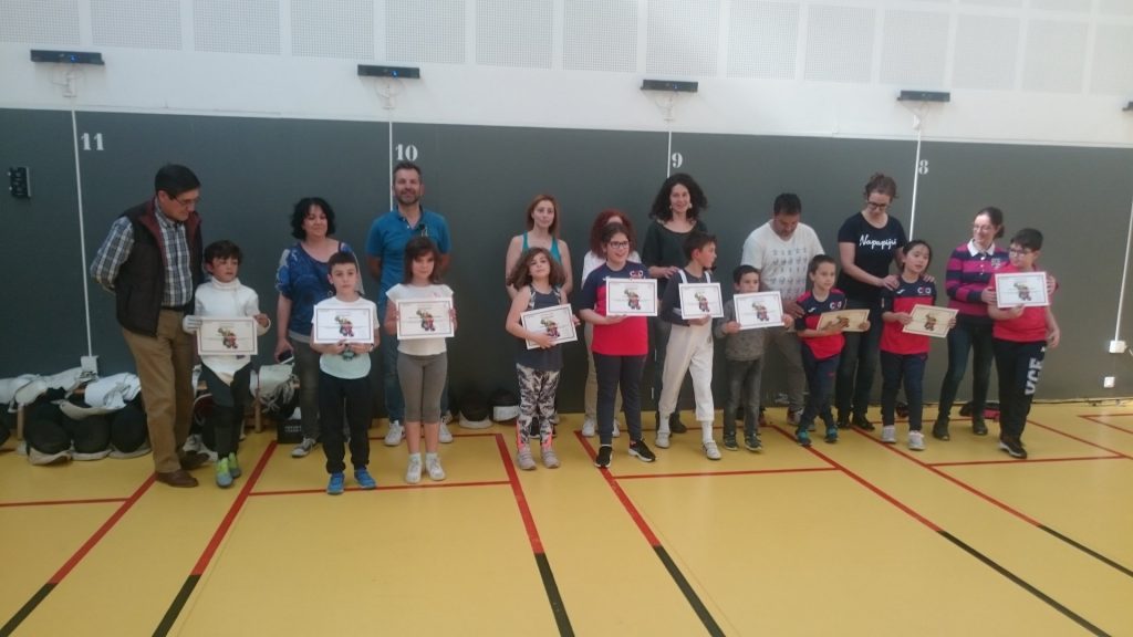 Nos hemos juntado en las pistas de la Sala de Esgrima del Lalo García, para hacer unos asaltitos, pasar un buen rato con una meriendilla y hacer entrega a la chavalada de sus DIPLOMAS acreditativos del curso 18/19 finalizado.