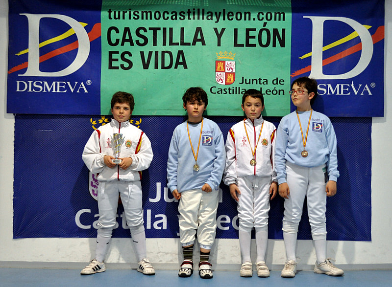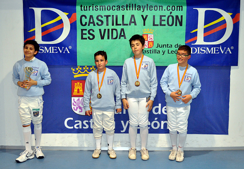 Las espadas vallisoletanas del Dismeva Valladolid Club de Esgrima y del Club de Esgrima Pisuerga subieron ayer sábado en la Sala de Esgrima de Río Esgueva a lo más alto al obtener 3 de los 4 oros, 2 de las 4 platas y 4 de los 8 bronces en juego del torneo. En espada masculina categoría M-12 todos los títulos fueron para los 4 participantes del Pisuerga, que impidieron que los 10 candidatos propuestos por la Sala de Esgrima de Burgos obtuvieran algún rédito.