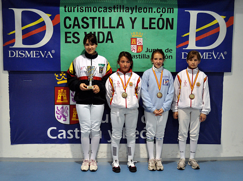 Irene Losada, del Dismeva Valladolid Club de Esgrima, tras derrotar en semifinales a la tiradora del Pisuerga Paula Minguillón, se impuso en la final a la burgalesa Sofía Bueno 5 a 4, ante la alegría de sus padres y los aficionados vallisoletanos. La del Dismeva coge así moral para afrontar, pese a su juventud, la Fase Nacional M-15 que disputará en Valladolid el próximo sábado 9 de abril en el nuevo polideportivo Lalo García de Parquesol. La familia Losada Lomas celebraba así su segunda gran alegría de la tarde, pues su otra hija, Andrea, del Pisuerga, fue la triunfadora de la prueba de M-10 tras imponerse por un rotundo 10 a 3 a la burgalesa Naiara Rodríguez.