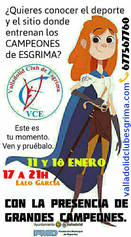 El 11 y 18 de enero de 2018 de 17;00h a 21;00h el Valladolid Club de Esgrima te espera en sus jornadas de puertas abiertas en el Pabellón Polideportivo Lalo García de Parquesol.
