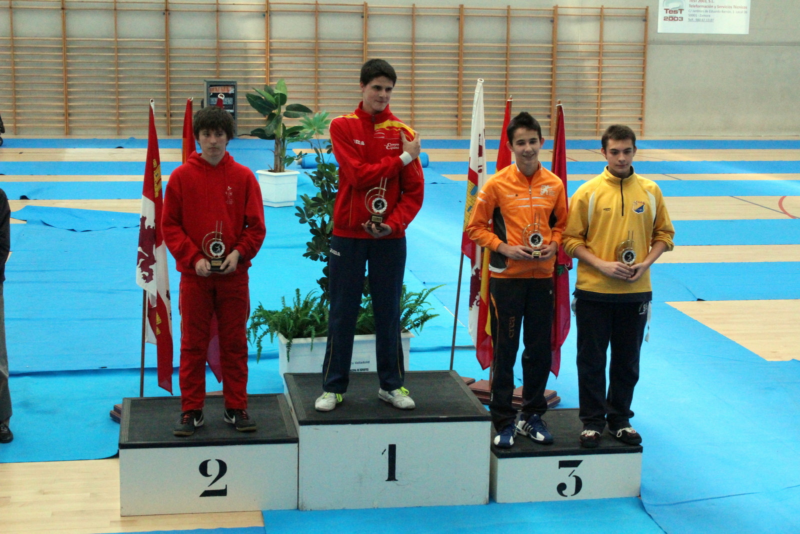 IMG_4488El podio de Espada Masculina quedó con Javier Fernández del Club de Esgrima Europeo de Las Rozas en primer lugar, Rodrigo Alegre de la Sala de Esgrima de Burgos en segundo lugar y los bronces para Antonio Javier Jiménez de la Sala de Armas de Madrid y Javier Orta del Club Recreativo de Esgrima de Alcobendas