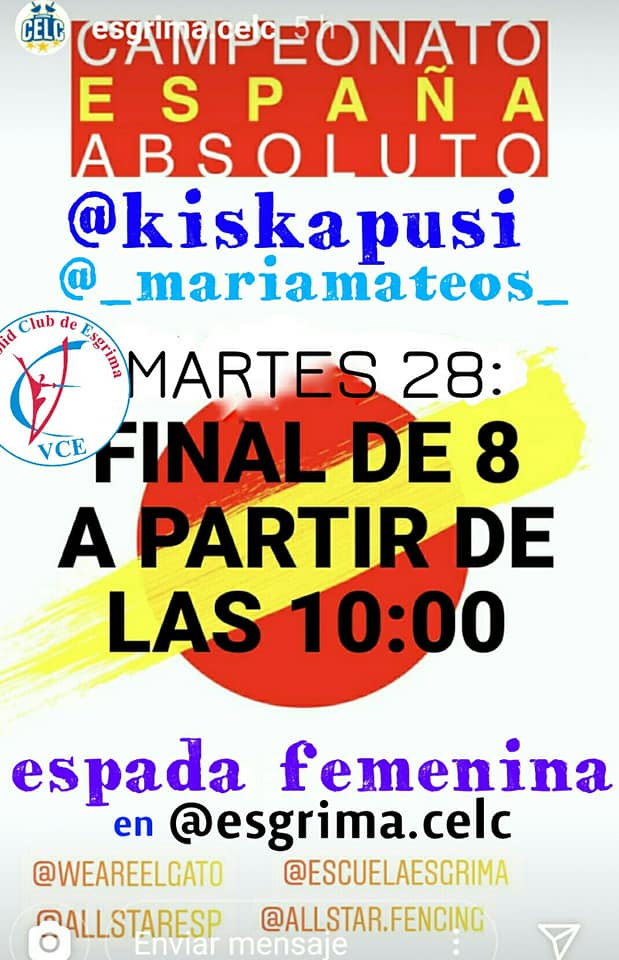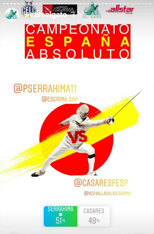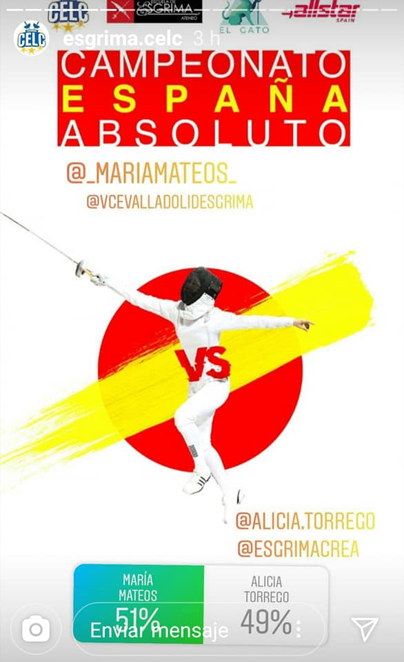Vaya jueguecito que se han inventado en INSTAGRAM. Los sitios del LÁZARO CÁRDENAS (espada), ATENEO (florete) y WEAREELGATO (sable) pusieron en juego las eliminatorias del TABLÓN de 16 correspondiente al ranking nacional real, por lo que los emparejamientos serían los mismos de un Campeonato de España en las pistas. ¿La única diferencia? En este caso los tocados los harían los seguidores respectivos en la cuentas de Instagram del CELC, Ateneo y ElGato.