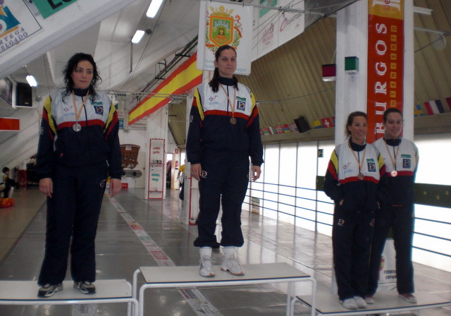 En categoría femenina dominio absoluto del Dismeva copando el podio. En el cruce de cuartos, con Dóra Kiskapusi exenta por tener el nº 1, Gracia Horno derrotaba a su compañera Lorena Nuñez por 15 a 10, Andrea Martín vencía a la burgalesa Hernando por lesión y Susana Blanco deba buena cuenta de la burgalesa Bilbao por 15 a 3: semifinales vallisoletanas. En la 1º semifinal, Dóra Kiskapusi arrollaba a Gracia Horno venciendo por 15 a 3 y en la 2º Susana Blanco vencía a Andrea Martín por 15 a 11. En la final, superioridad de la magiar del Dismeva al vencer por 15 a 4 y llevarse el oro.