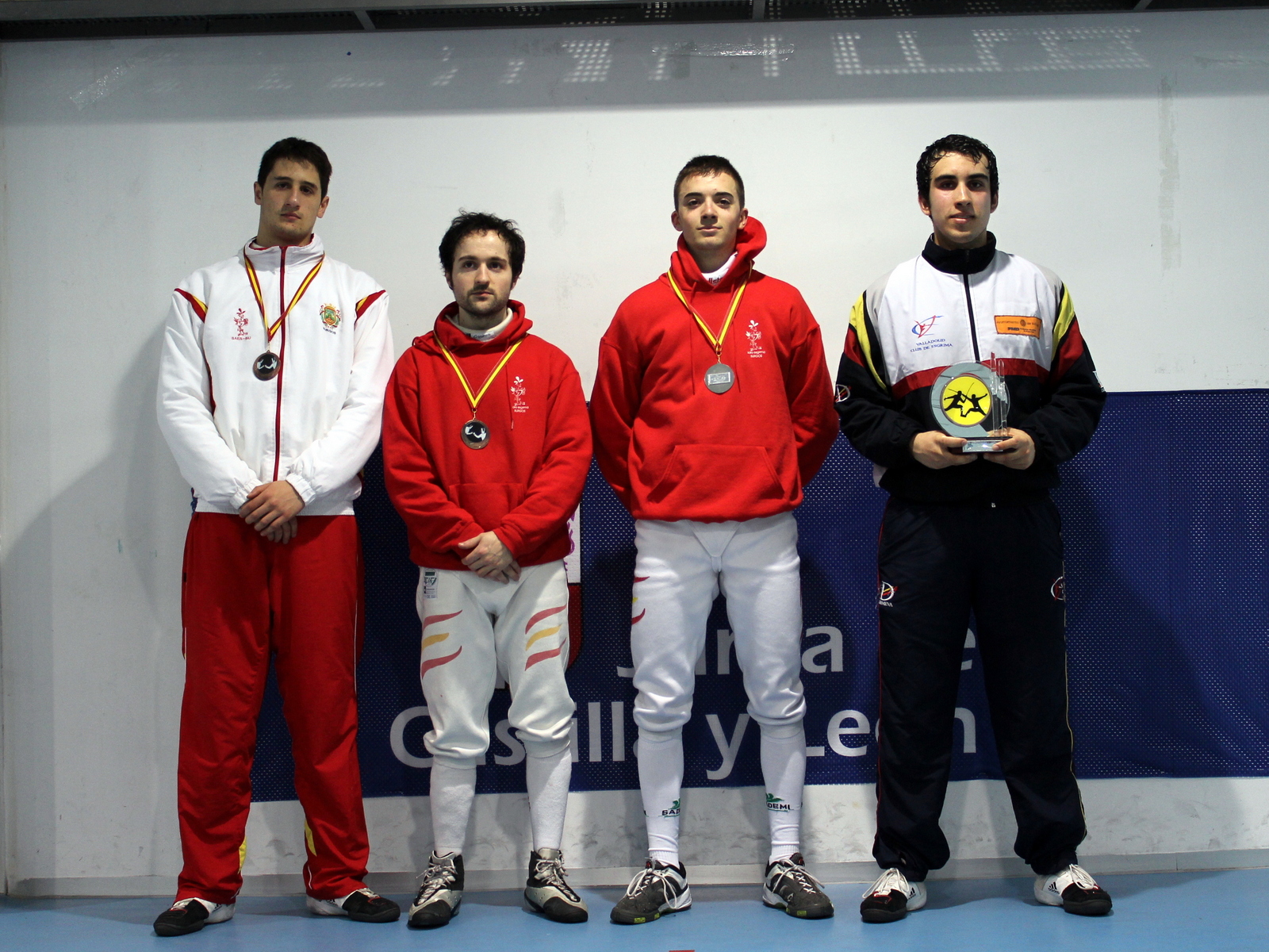 A continuación se disputó la categoría absoluta individual proclamándose Campeón de Castilla y León Marcos García, del Valladolid Club de Esgrima, acompañado en el podio de los burgaleses de la SAES Álvaro Ibáñez, (plata), y Óscar Arribas y Jaime Durán, (bronces). La espada femenina tuvo como protagonista y campeona a Flavia Pérez que de nuevo conseguía el oro. La plata fue a parar a manos de Carla Martínez, también de la SAES de Burgos, y los bronces se quedaron en Valladolid en los cuellos de Susana Blanco y Lorena Núñez, ambas del Valladolid Club de Esgrima.