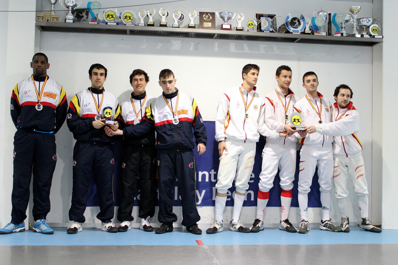 En la categoría absoluta masculina también el triunfo cayó en manos de la Sala de Armas de Burgos, y de nuevo por un tocado en la prioridad, 40-39. El equipo del VCE estaba formado por Adrián Yáñez, Yonier Pérez, Marcos García y Miguel Pírez. En la categoría absoluta femenina llegó el triunfo para las del Valladolid Club de Esgrima, que vencieron con un muy holgado 45-34, formando el equipo Macarena Centenera, Susana Blanco, Lorena Núñez, (que hizo un papel fantástico) e Inés Martín.