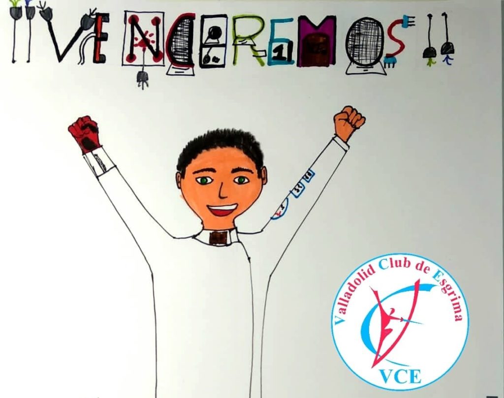 Así quiso Javi Güemes mostrarnos con su dibujo su mensaje de ÁNIMO. Vestido de esgrimista, tiene muy claro que VENCEREMOS. Levanta los brazos con la seguridad en la VICTORIA. Nos costará, pero acabaremos reforzados haciendo lo que más nos gusta. Gracias Javi. Te ha quedado muy chula.