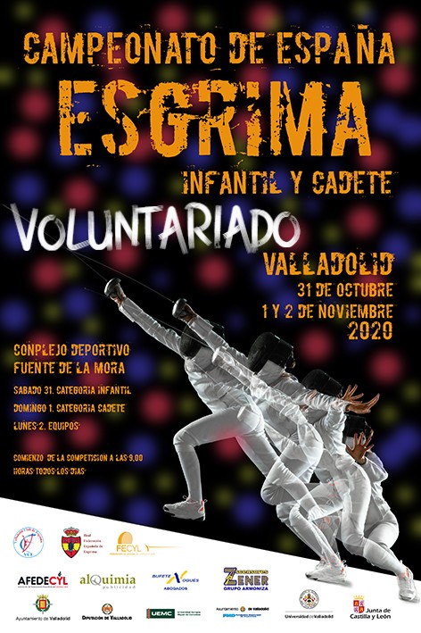 Nos ponemos en contacto contigo para informarte que ya está abierto el plazo de inscripción de voluntarios para el Campeonato de España Infantil y Cadete de Esgrima que se celebra en el complejo Deportivo Fuente de La Mora (Valladolid) Valladolid del 31 de octubre al 2 de noviembre Este evento está organizado por la Federación de