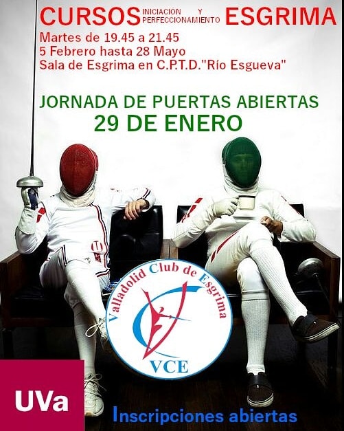 REGALA(TE) ESGRIMA… NUEVOS CURSOS de INICIACIÓN en Lalo García (II y III) CURSO VCE Iniciación Adultos (+ 16 años) Lugar: Gimnasio Polideportivo Lalo García Fecha comienzo: 5 febrero Martes Finaliza: 4 de abril Jueves Clases : martes y jueves de 21’00 a 22’00 Precio: 80 € + licencia regional (18 €) + y seguro (21 […]