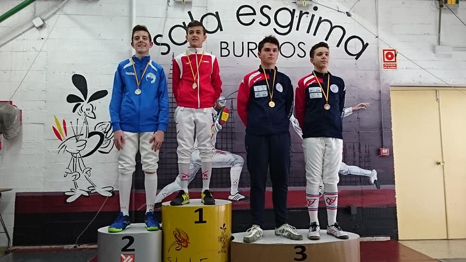 En ESPADA MASCULINA INFANTIL, el Valladolid subió a dos espadistas al tercer escalón del BRONCE, Álvaro Pascua caía con Miguel Martín de la Sala Burgos y ORO final. Jorge Martín el otro BRONCE VCE caía con Nuño Gallo del Cid Campeador y PLATA final.
