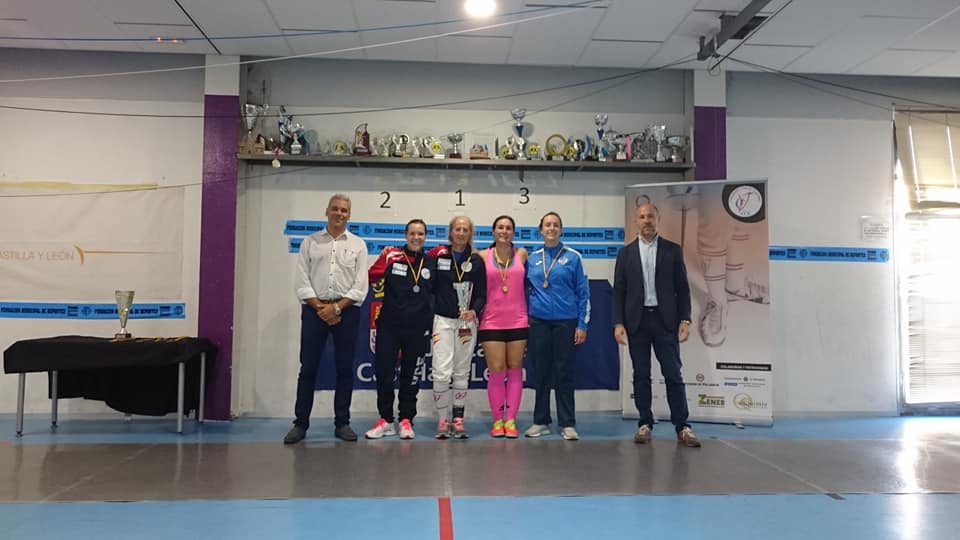 En la espada femenina, las chicas realizaron la tradicional competición, pero alternando los asaltos correspondientes con otra esgrimista de categoría mundial, con Begoña Garrido, la bilbaína del VCE que compitió con su silla de ruedas hasta llegar a la final contra su compañera Rocío Saucedo a la que venció en un asalto muy emocionante.