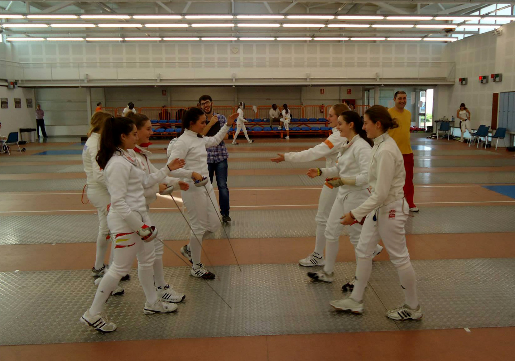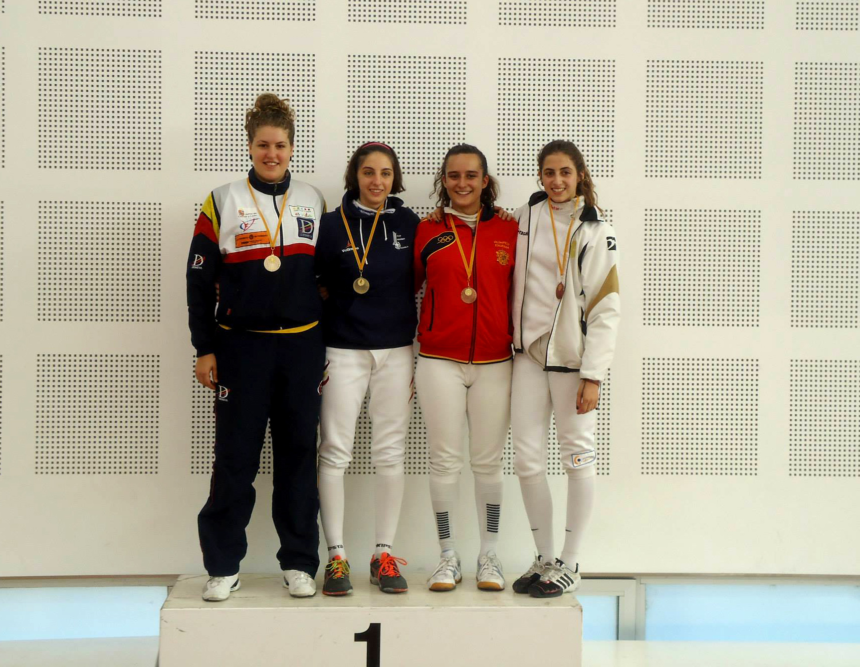 En las poules, Macarena se adjudicaba un puesto número 5 tras cinco victorias y una derrota, Inés Martín con el mismo número de victorias y derrotas, pasaba con el número 10, Elisa en una poule de sólo seis tiradoras tuvo tres victorias y dos derrotas pasando con el número 28, Naiara con tres victorias y tres derrotas pasaba con el número 30 y, finalmente, Irene con dos victorias pasaba con el número 50.
