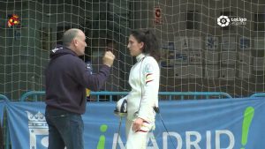 Su compañera María eliminaba a la logroñesa Carolina García con un contundente 15 a 5 para meterse en las medallas contra Sofía Cisneros del Esgrima Madrid.