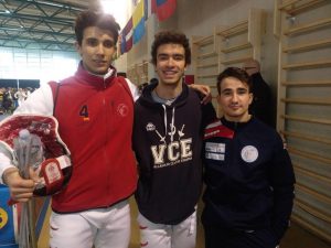 Daniel Alarcia, Noe Bermejo y Guillermo Nieto en la I Copa del Mundo Junior del año en Udine, Italia.Dora, Macarena y Maria participaron en Hungría bajo las órdenes de Ángel Fernández, director del Equipo Nacional Femenina.Equipazo JUNIOR en el TNR de Vitoria.Dora en el podium con el trofeo de CAMPEONA del Torneo Nacional de AlcobendasMaría Mateos en la COPA del MUNDO JUNIOR de Bratislava.Juanra, Carmen, Alfonso y Ángel en Santiago fueron la representación del VCE en el XII OPEN COMPOS-Trofeo Jose Goás del Compostela Esgrima.Guille, Rodri, Alex, Javi, Jorge, Gonzalo y Álvaro. Nuestros más jóvenes mosqueteros, participaron en el TRR M8, M10 y M12 de Burgos, consiguiendo 4 medallas.El equipo masculino CADETE en el TNR M17 de LOGROÑO. Todos los chicos de la foto y Miriam que participó el domingo.Ricardo Candeias consiguió un BRONCE en el TNR ABS de LOGROÑO. El equipo masculino, consigue permanencia en LIGA ORO