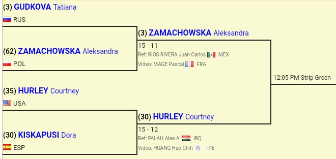 Un asalto duro la tuvo muy cerca de conseguir la clasificación para las 32 mejores, pero 3 puntos tan solo, un 12 a 15, la apearon de la competición hasta la magnífica posición 39 ante una Hurley que finalmente llegaría hasta el bronce. La nueva campeona del mundo es la italiana Mara Navarria.