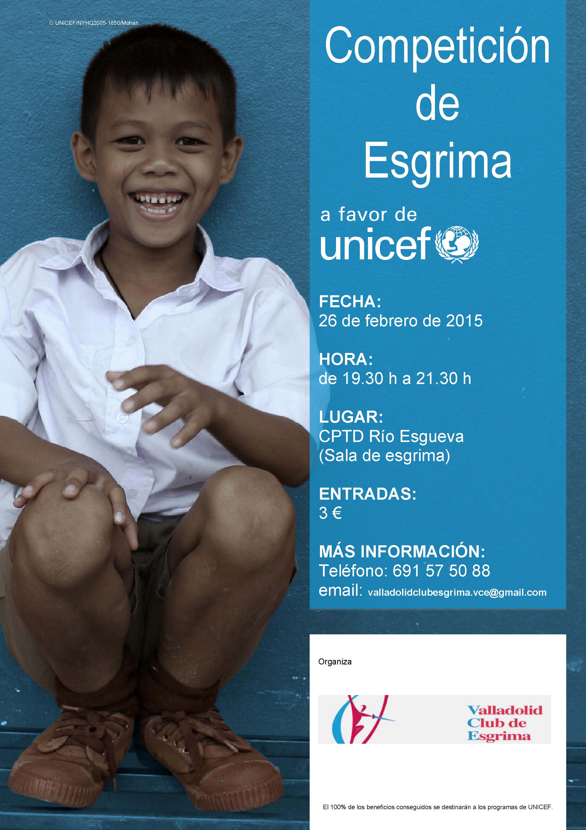 Todos con la infancia Deja un comentario / Por Valladolid Club de Esgrima / 24/02/2015 Este jueves 26 se celebrará en el CPTD Río Esgueva una competición de esgrima a favor de la infancia, desde las 19’30 hasta las 21’30. Ellos lo merecen todo. ¡¡ANIMAROS!!