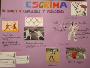 Este es el trabajo escolar de nuestra ESGRIMISTA más pequeñita. En primero de primaria y a punto de cumplir los 6 años, así es como ve ella la ESGRIMA para un trabajo para el colegio.