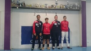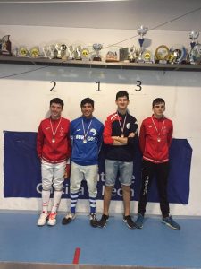 La competición comenzó con la categoría absoluta senior masculina, con 11 chicos inscritos. Tras la primera fase de grupos, los mejores fueron Noé Bermejo con 5 victorias y 1 derrota y Dani Alarcia con 4V y 1D. Tras las primeras eliminatorias, fueron ellos dos los únicos clasificados para la final de 8, venciendo sus asaltos hasta las semifinales. Noé caía ante Yáñez del club El Duque por 15 a 12 mientras Dani vencía a Gonzalo Mahamud del Burgos por un ajustadísimo 15 a 14. Alarcia clasificado para la final contra Yañez, vencía tras un primer tiempo igualado por 15 a 9 al de Medina del Campo y proclamándose VENCEDOR y medalla de ORO del I ranking regional de la temporada, con su compañero Bermejo con el BRONCE.