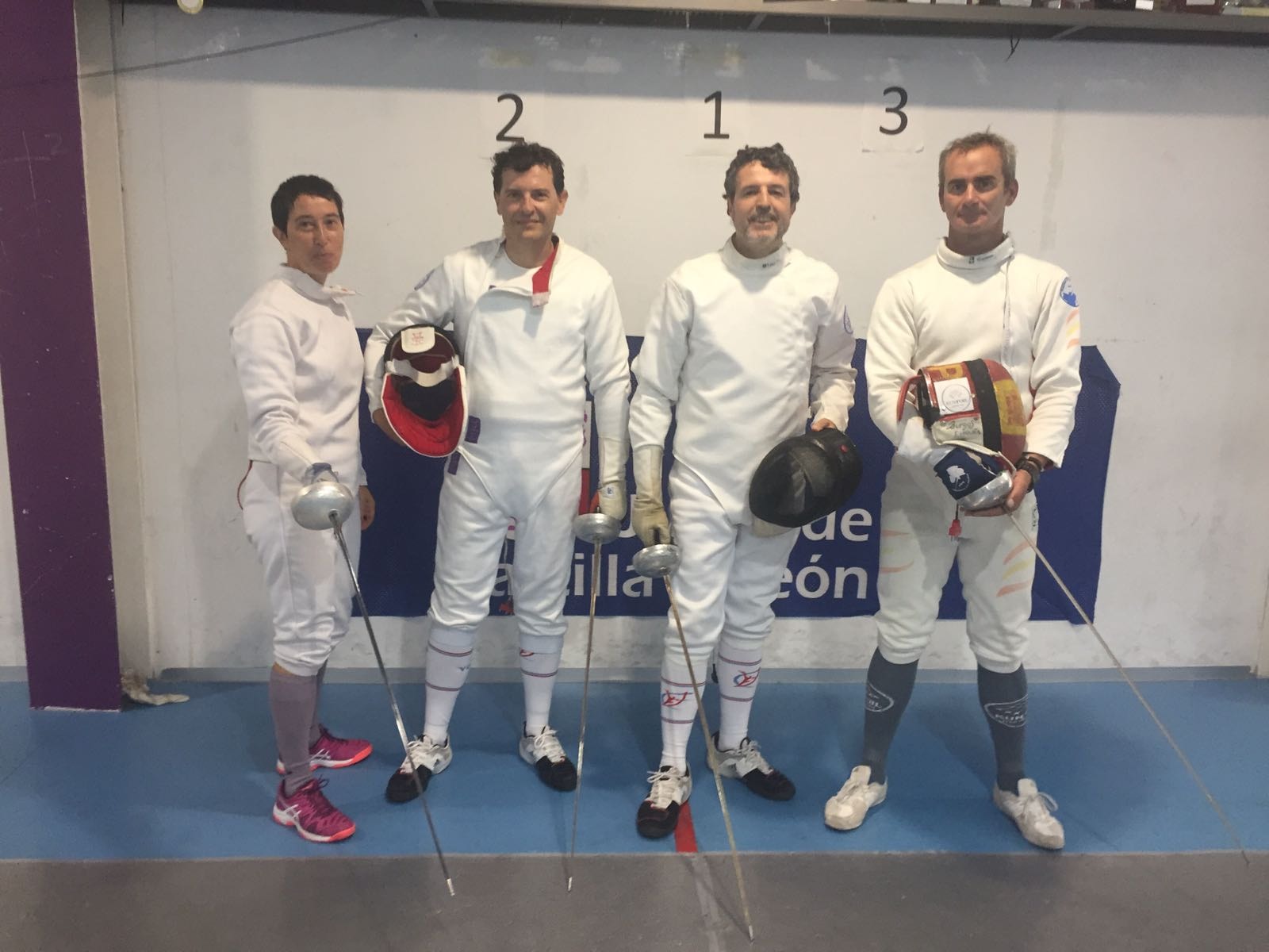 La última categoría del día para el Valladolid, fue la de VETERANOS mixta. Tras una doble vuelta de poules, y las eliminatorias, el vencedor fue Roberto Codón del Cid de Burgos, mientras nuestros 3 inscritos entraban en el podium con Juanjo Esteban medalla de PLATA tras el 10 a 8 de la final ante Codón. Carmen Hernanz y Miguel Varela del VCE, conseguían las dos medallas de BRONCE que completaban el podium.