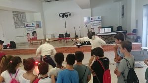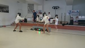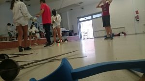 Ya en la semana cultural, Chris Faget organizó los TALLERES de ESGRIMA para que los alumnos que tuviesen curiosidad pudiesen apuntarse y conocer más de cerca nuestro deporte. 6 talleres durante todo el día, llevaron a unos 60 alumnos y alumnas a participar activamente, perfectamente asistidos también por Xose, además de por nuestros cadetes David y Kiko, que cerraron la intensa jornada, con una pequeña exhibición en el patio, para mostrar también a las familias como se desarrolla un asalto de esgrima.