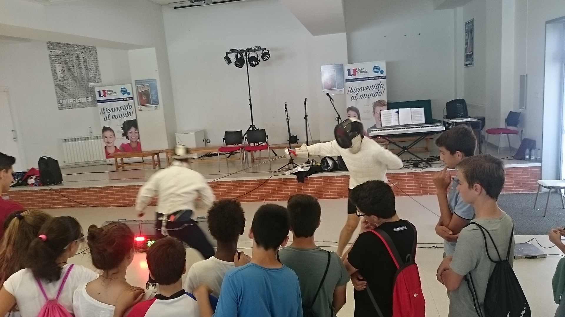 Colaborando con su final de curso, hemos hecho los días 13 y 14 de junio, un par de jornadas de promoción de la ESGRIMA en el LICEO FRANCÉS de Laguna de Duero. Gracias a su gran disposición, completamos la visita con 6 talleres de ESGRIMA para grupos de unos 10 jóvenes, además de una pequeña exhibición el día 28, colaborando con su semana cultural.